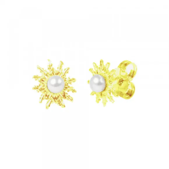 Pendientes Eguzkilore Plata Dorada y Perla 14mm