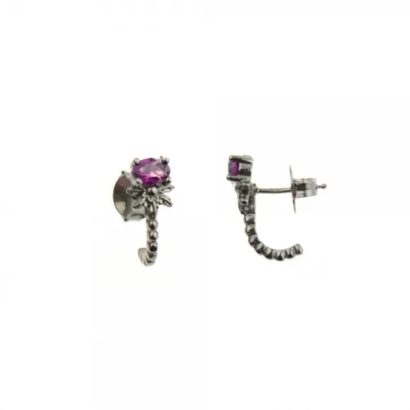 Pendientes de Plata de 1ª Ley (925mm) bañado en rutenio con cristal de color amatista engarzado en motivo en forma de Eguzkilore de la colección Ghor. Cierre presión.