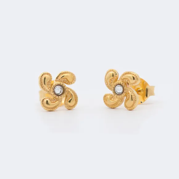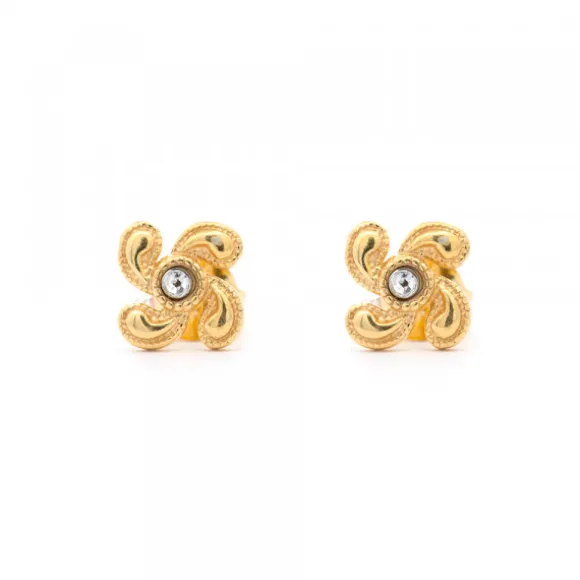 Pendientes Lauburu Berria Plata Dorada y Circonita