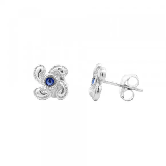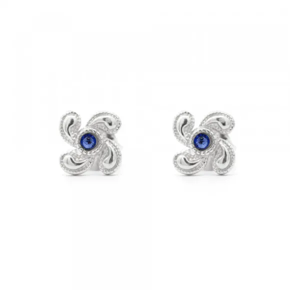 Pendientes Lauburu Berria Plata y Circonita Azul