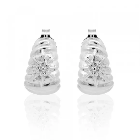 Pendientes medio aro de la colección Mask de Plata de 1ª Ley (925mm) evocan la belleza del mar con su diseño inspirado en una concha marina. Medida pendientes: alto 20mm y ancho 17mm. Diámetro Eguzkilore: 11mm. Cierre presión.
