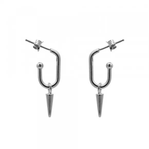 Pendientes de Medio Eslabón de Plata de 1ª Ley (925mm) con una púa colgante bañado en rutenio. Cierre criolla. Medidas del eslabón: 15mm largo 8mm de ancho. Medidas de las púa: 9mm de largo.