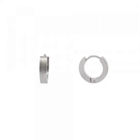 Pendientes mini de acero quirúrgico con acabado mate. Unisex. Cierre catalán. Diámetro del aro: 13mm. Ancho: 3mm.