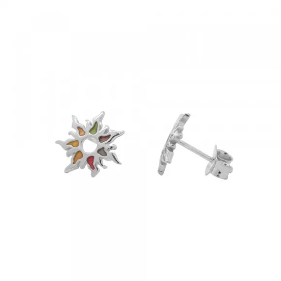 Pendientes Mountain de Plata de 1ª Ley (925mm) con forma Eguzkilore compuesto por 7 gotas con esmalte multicolor. Cierre presión. Diámetro pendiente: 11mm.