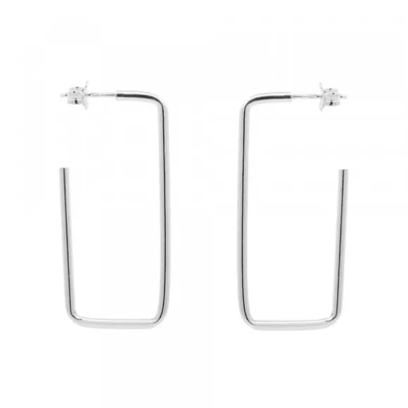 Pendientes de Aro Rectangular de Plata de 1ª Ley (925mm). Cierre de presión. Medidas del rectángulo: 40mm de alto y 17mm de ancho.