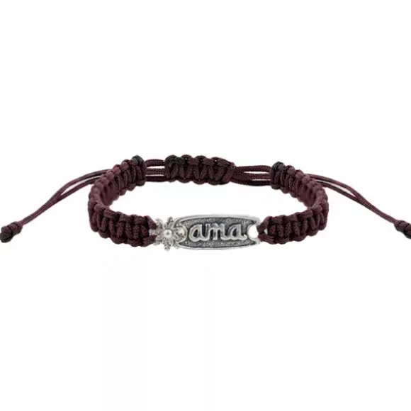*No se admiten cambios ni devoluciones en artículos de Outlet.Pulsera Ama de Eguzkilore con doble cuerda corrediza de color marrón y chapa rectangular de Plata de 1ª Ley (925mm) con acabado rústico. Incluye la palabra «Ama» grabada y un pequeño Eguzkilore en la parte izquierda de la pieza.
