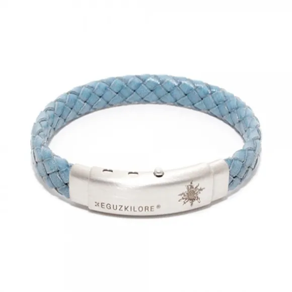 Pulsera Eguzkilore Cuero trenzado Azul Personalizable