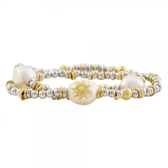 Pulsera Eguzkilore Elástica Plata Dorada y Perlas