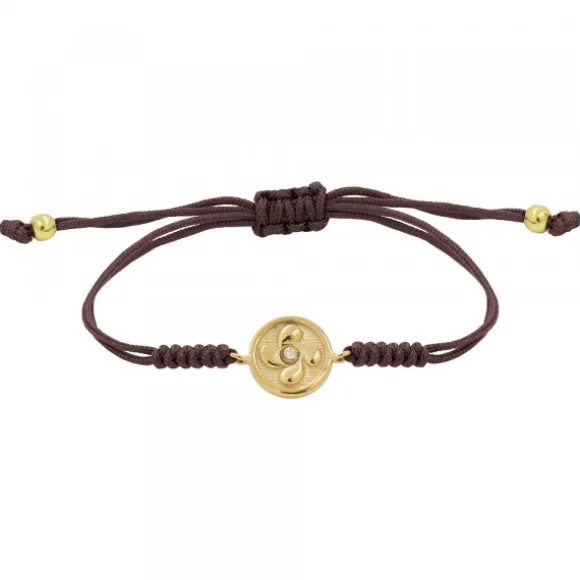 Pulsera Lauburu Redondo Plata Dorada y Circonita Marrón