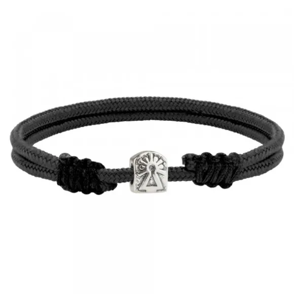 Pulsera de nylon negra con cuerdas corredizas y cierre macramé con charm en forma de la Virgen del Pilar de Plata de 1ª Ley (925mm). Diámetro de la pulsera cerrada: 6cm