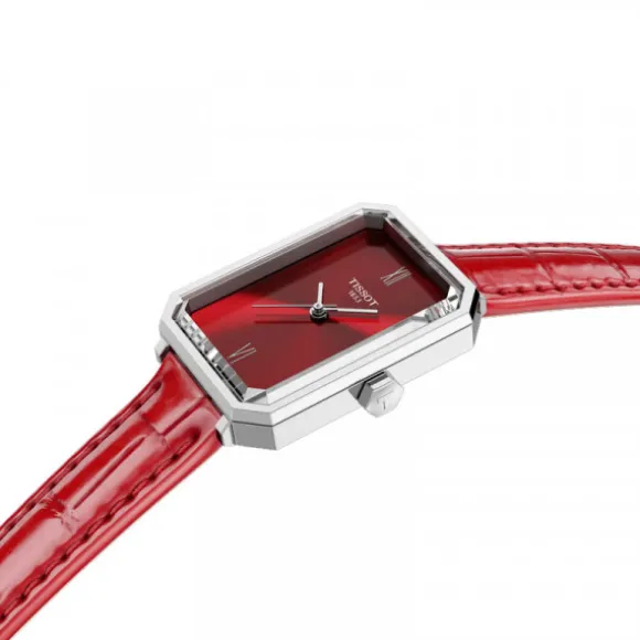 Tissot para mujer modelo SVR 30mm, se inspira en la época Art Déco, desarrollada en los años veinte. Esta época, caracterizada por las formas geométricas y los motivos abstractos, se convirtió en un estilo dominante en la arquitectura, el diseño de interiores, la moda y las artes gráficas. El movimiento de cuarzo de este modelo ofrece una precisión que permite avanzar con fuerza y, con el indicador de fin de vida, el SRV anticipa su próximo movimiento, para que siempre esté preparado. SRV significa «Sapphire Rectangle V», es decir, Cristal de zafiro facetado de silueta rectangular, y la «V», un guiño a su resistencia al agua de 5 bar.La caja es de acero inoxidable 316L con cristal de zafiro abombado irrayable. La esfera es roja con índices romanos a las (12 y 6 en punto). La correa de piel destaca por su evolución a lo largo del tiempo la cual se adapta a la muñeca del usuario ofreciendo comodidad y un ajuste único, y cuenta con cierre de hebilla. Tiene un hermetismo hasta una presión de 50m (5bar.). El reloj cuenta con 2 años de garantía cubierta por el fabricante y caja original.Modelo: T1601101642300