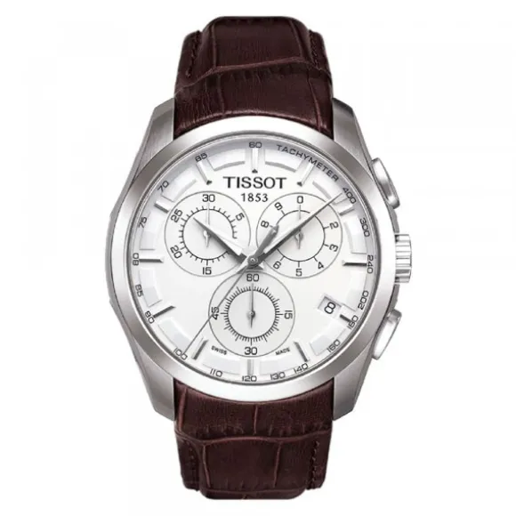*No se admiten devoluciones en artículos de outlet.Tissot Couturier Chronograph, un sofisticado reloj de cuarzo suizo para caballero. Este modelo encarna la filosofía de la colección «Couturier» (Modisto en francés), que se caracteriza por la confección meticulosa y el ajuste impecable de los materiales, resultando en una pieza atemporal y elegante. Caja redonda de 41 mm de diámetro está fabricada en acero inoxidable 316L pulido, movimiento de cuarzo suizo, conocido por su fiabilidad. Las funciones de cronógrafo se gestionan a través de los pulsadores laterales y los subcontadores para medir intervalos de tiempo con gran exactitud. Incluye también una práctica ventana de fecha y una escala de taquímetro en el bisel interno para calcular velocidades. Cristal de zafiro abombado y resistente a los arañazos que protege la esfera. La correa de piel de vaca marrón, con un elegante acabado que imita la piel de cocodrilo, se cierra con un seguro cierre de mariposa con pulsadores. Además, el reloj es resistente al agua hasta 100 metros (10 bar)Modelo: T0356171603100
