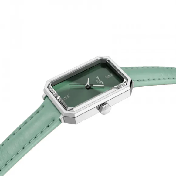 El reloj Tissot SRV se inspira en la época Art Déco, desarrollada en los años veinte. Esta época, caracterizada por las formas geométricas y los motivos abstractos, se convirtió en un estilo dominante en la arquitectura, el diseño de interiores, la moda y las artes gráficas. Aunque el SRV se inspira directamente en un modelo de 1975, ese mismo diseño era en sí mismo una interpretación de las creaciones anteriores de Tissot de los años veinte.El movimiento de cuarzo del SRV ofrece una precisión que permite avanzar con fuerza y, con el indicador de fin de vida útil, el SRV anticipa su próximo movimiento, para que siempre esté preparado. SRV significa «Sapphire Rectangle V»: cristal de zafiro facetado de silueta rectangular y la V un guiño a la resistencia de agua 5bar (simbolizada por el número 5 romano). La caja de acero inoxidable 316L de 30mm de longitud y 21.80mm de ancho. La esfera es verde con índices romanos a las 12 y 6 en punto. La correa de piel verde destaca por su evolución a lo largo del tiempo. Se adapta a la medida del usuario y tiene cierre de hebilla. Tiene un hermetismo hasta una presión de 50m (5bar.). Incluye caja original y garantía de 2 años cubierta por el fabricante.Modelo: T1601101609300