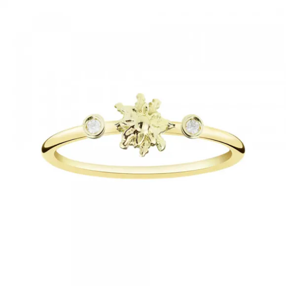 Anillo de Oro Amarillo 1ª Ley reciclado (750mm- 18kt.) con motivo en forma de Eguzkilore y dos brillantes redondos a los lados en la parte central. Talla Nº12.