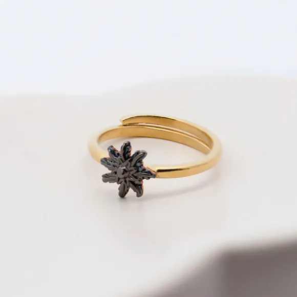 *No se admiten cambios ni devoluciones en artículos de Outlet.Anillo de Plata de 1ª Ley (925mm) bañado en Oro Amarillo de 18kt. con motivo Eguzkilore bañado en rutenio de la colección Ghor. Medida ajustable con posibilidad de agrandar y achicar dos tallas.
