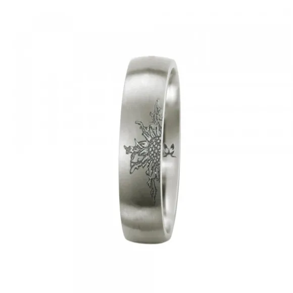 Alianza o anillo solitario de titanio lisa con acabado mate de Eguzkilore. Se trata de un material ligero y resistente a la corrosión. Tiene medio eguzkilore grabado en la parte exterior del anillo. Un toque moderno y diferente. Se puede grabar nombre y fecha en la parte interior. El plazo de entrega con grabación es de 10 días. Ancho de 5mm.*En caso de querer otra talla se entregará en un plazo de 4 semanas.