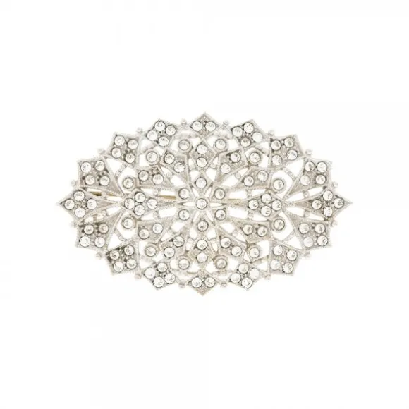Broche Oval Plata y Cristales Blancos