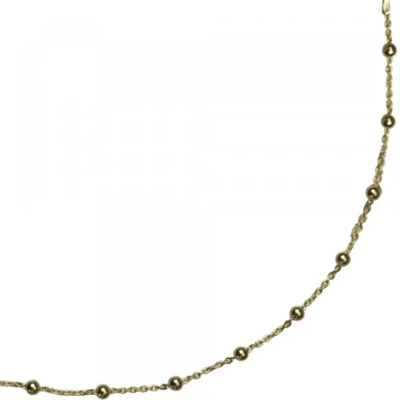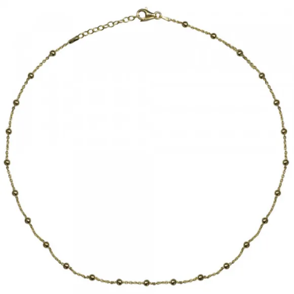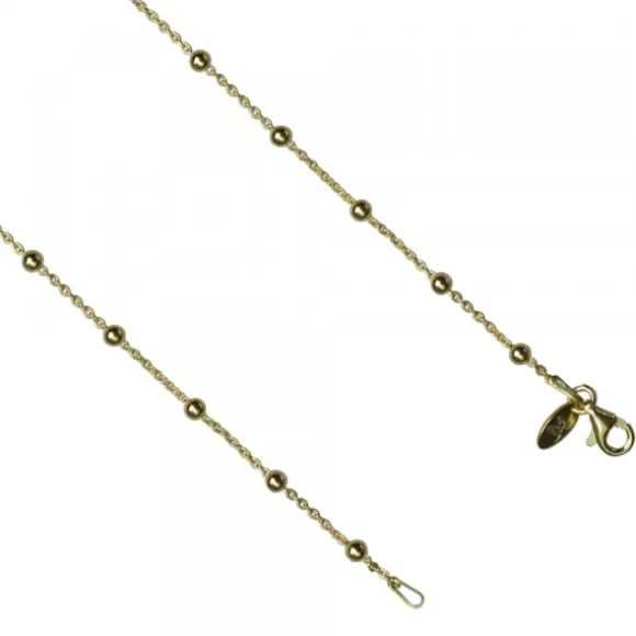 Cadena modelo Forza de Plata de 1ª Ley (925mm) de hilo de 0,40mm de grosor bañada en oro 18kt. con bolitas intercaladas. Medidas disponibles: 38cm (+3cm de alargador), 42cm (+3cm de alargador) y 50cm. Seleccionar medida en el desplegable.