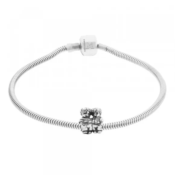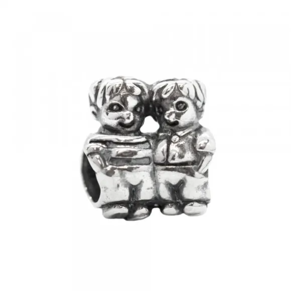 Charm de Plata de 1ª Ley (925mm) con forma de dos niños unidos. Compatible con pulseras y collares de Eguzkicharm y otras marcas. Diámetro del charm: 10mm de alto y 9mm de ancho.