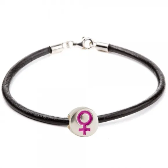 Charm de Plata de 1ª Ley (925 mm) con el Símbolo de La Mujer en surco con esmalte morado. Pieza de la colección Morea, en favor de la Igualdad y del Empoderamiento de la Mujer. Compatible con pulseras y collares de Eguzkicharm y otras marcas. Se puede grabar un número o inicial en la parte trasera del charm. Pulsera no incluida.*Una vez realizada la grabación, no se admite devolución.