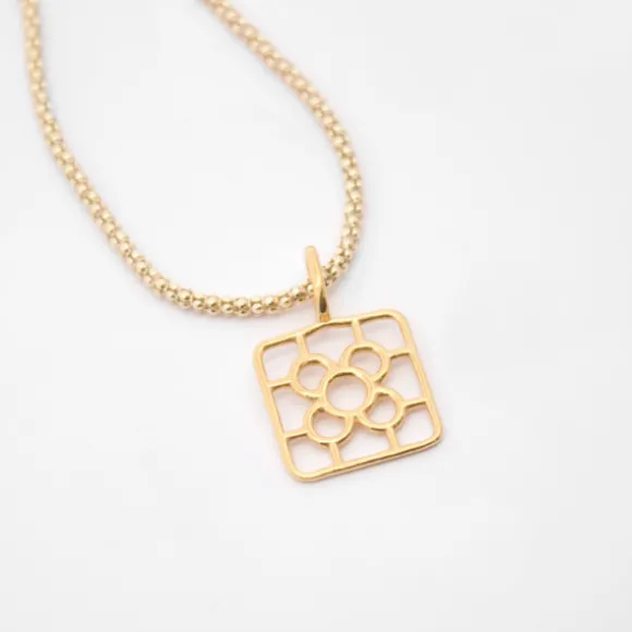 Colgante rectangular en Plata de 1ª Ley (925mm) bañado en Oro 18kt. con motivo de la baldosa de Bilbao calado. Medidas del colgante: alto 22mm y ancho 14mm. Medidas de la reasa: alto 7mm y ancho 6mm. Cadena no incluida.