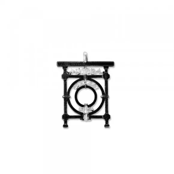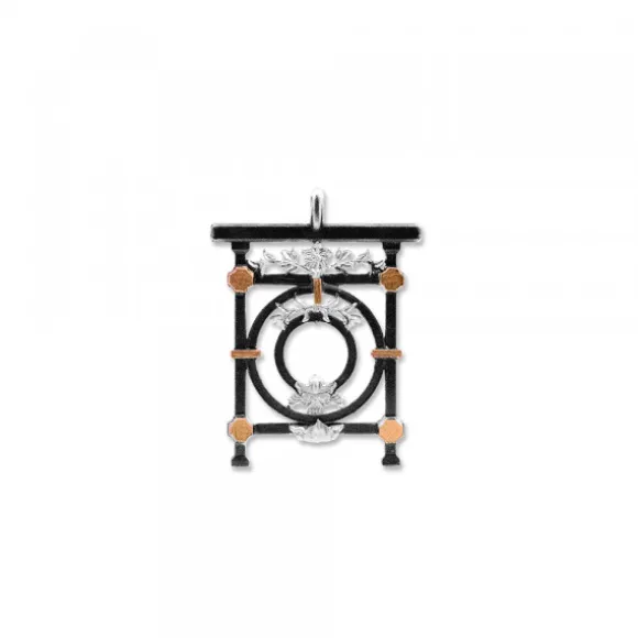 Colgante silueta de la icónica barandilla de la Concha de San Sebastián – Donostia de Plata de 1ª Ley (925mm) con acabado rústico, conbinado en plata, rutenio y finas láminas de oro 18kt. (750mm). Medida barandilla: alto 24mm y ancho 18mm. Reasa: 3mm. Cable no incluido.
