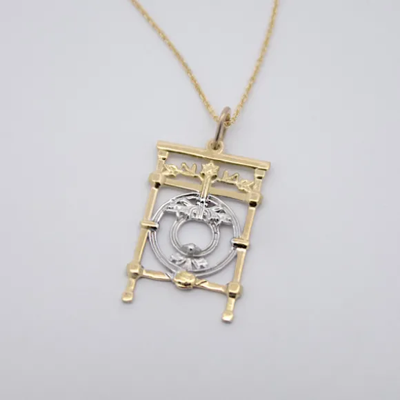 Colgante de Oro amarillo reciclado (750mm-18kt.) con motivo de La Barandilla de La Concha de San Sebastián con la parte central en oro blanco 18kt. Medidas del colgante: Alto 22mm y Ancho 19mm. Medidas de la reasa: 5mm de alto y 4mm de ancho. Cadena no incluida.