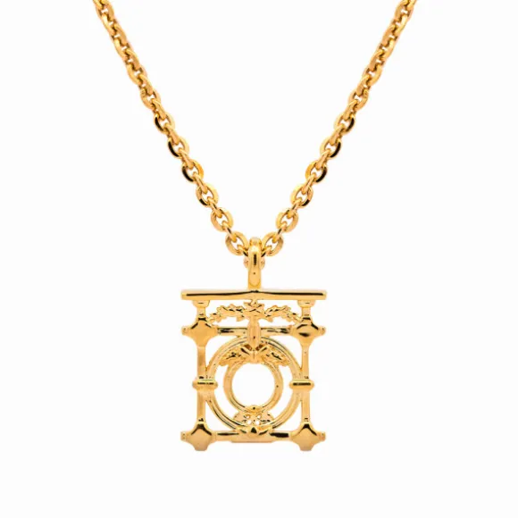 Colgante Barandilla de la Concha de Plata de 1ª Ley (925mm) bañada en oro 18kt.. La barandilla rodea la playa de la Concha de San Sebastián, uno de los iconos vascos más conocidos mundialmente construida en 1910. Medidas de la barandilla: Alto 15mm y Ancho 14mm. Medidas de la reasa: Alto 2mm y Ancho 2mm. Grosor: 2mm. No incluye cadena.