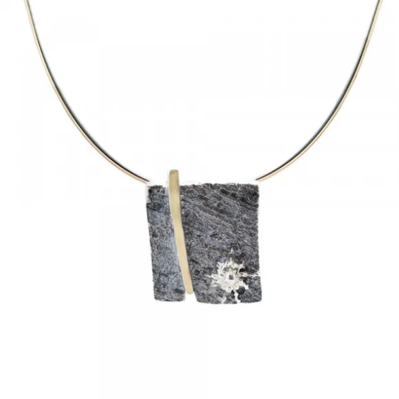 Colgante Cuadrado Flysch Plata con Lámina de Oro