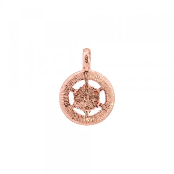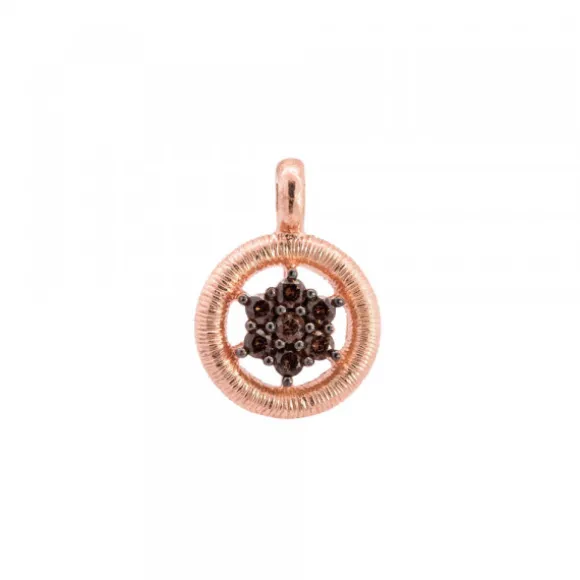 * No se admiten cambios ni devoluciones en artículos de Outlet.Colgante de Plata de 1ª Ley (925mm) con baño de oro rosa y circonitas en forma de orla color marrón. Diámetro colgante: 16mm. Medida reasa: 4mm. Medida circonita: 2mm.