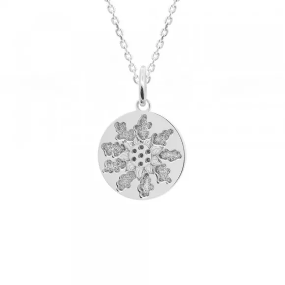 Colgante medalla de Plata de 1ª Ley (925mm) en forma redonda con motivo Eguzkilore degradado en la parte central. Diámetro del colgante: 13mm. Medida reasa: 5mm. Cadena no incluida.
