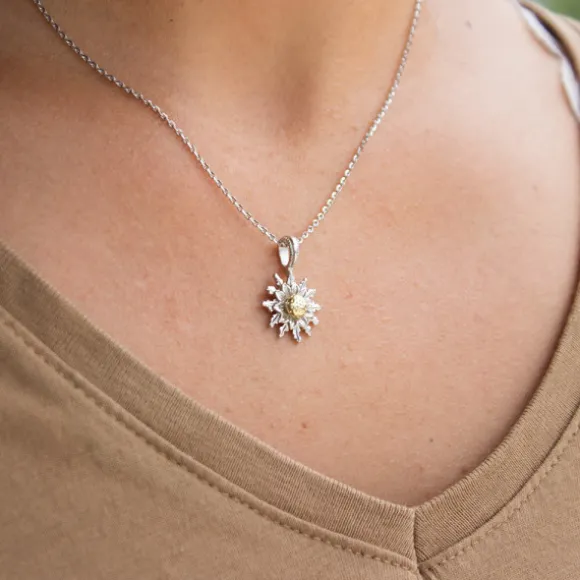 Colgante pequeño de Plata de 1ª Ley (925mm) con forma de Eguzkilore. La parte central del Eguzkilore es de Plata de 1ª Ley bañada en Oro Amarillo de 18kt. Diámetro del Eguzkilore: 14mm. Medidas de la reasa: Alto: 6mm y Ancho: 2mm.Diámetro central del baño de oro amarillo de 18kt.: 4mm. Cadena no incluida.