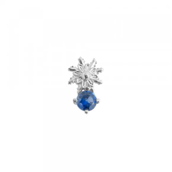 Colgante en Oro Blanco reciclado (750mm – 18kt.) con Zafiro azul engarzado y motivo Eguzkilore en la parte de arriba de la colección Enea2 de Eguzkilore. Medidas del Zafiro: Ancho 4mm y Alto 4mm. Cadena no incluida.