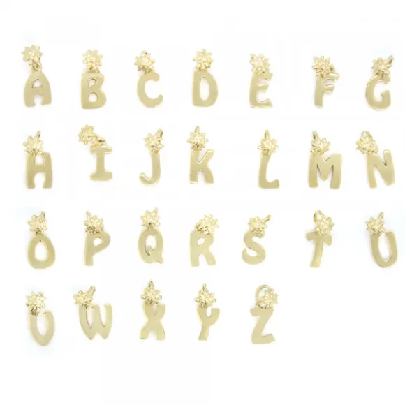 Colgante inicial de Plata de 1ª Ley (925mm) bañada en Oro Amarillo de 18kt. con reasa en forma de Eguzkilore. Medidas de la inicial: alto 10mm y ancho 8mm. Diámetro de la reasa: 4mm. Medidas del Eguzkilore de la reasa: 5mm de alto y 5mm de ancho.* Cadena no incluida.