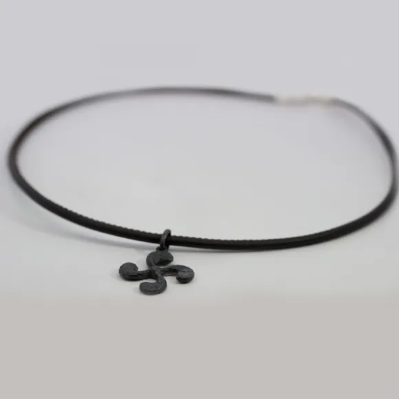 Colgante de Plata de 1ª Ley (925mm) oxidada en color negro con forma del clásico Lauburu. La pieza está elaborada artesanalmente y, mediante un meticuloso proceso, se ha obtenido un acabado texturizado. Es por eso, que cada pieza es única, no hay dos iguales. Diámetro Lauburu: 22mm. Medida reasa: alto 8mm y ancho 7mm. Grosor Lauburu: 2.5mm. Posibilidad de comprar junto a cable de acero triple hilo a juego, selecciona en el desplegable.