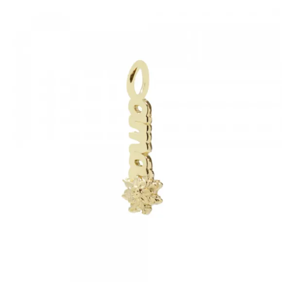 Colgante de Plata de 1ª Ley (925mm) bañado en oro amarillo de 18kt. con la palabra «ama» y mini Eguzkilore en el extremo. Diámetro de la reasa: 6mm. Diámetro de la pieza: Alto 15mm y ancho 3mm. Diámetro del Eguzkilore: 6mm. Cadena no incluida.