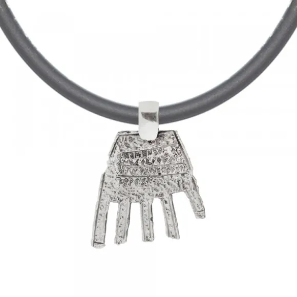 *Como colaboradores oficiales, una parte de los beneficios van destinados a las investigaciones de la Sociedad de Ciencias Aranzadi. Saber más en el siguiente enlace.Colgante de Plata de 1ª Ley (925mm) de La Mano de Irulegi con cordón de caucho a elegir. El colgante contiene tres palabras «Sorioneku» inscrita en la parte superior y las dos siguientes procedentes del texto original aún no descifradas. Antiguamente era un objeto ritual que se colgaba en la puerta de la entrada de la vivienda para proteger el hogar. Medidas del colgante: alto 35mm y ancho 28mm. Medida reasa: alto 10mm y ancho 7mm. Incluye cordón de caucho de 4mm a elegir color y medida en el desplegable.