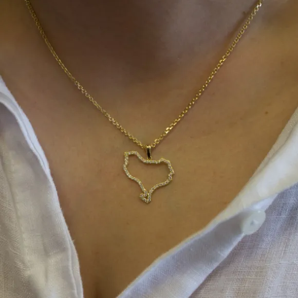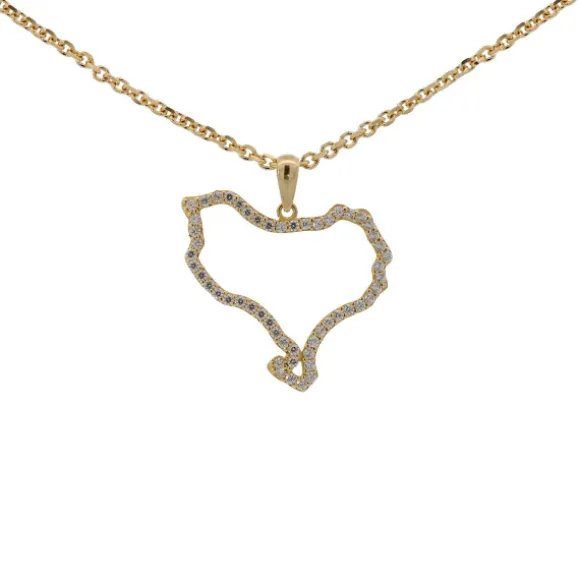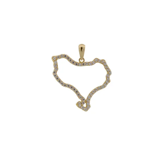 Colgante de Oro de Ley de 18kt. (750mm) con forma de mapa de Euskal Herria compuesto por circonitas blancas. Medida colgante: alto 20mm y ancho 22mm. Medida reasa: alto 5mm y ancho 3mm. Grosor colgante: 0.5mm. Diámetro circonita: 0.5mm. Cadena no incluida.