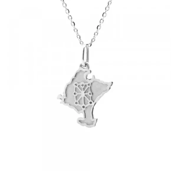 Colgante en Plata de 1ª Ley (925mm) con forma del mapa de Navarra y escudo grabado en la parte central. Medidas del colgante: 20mm de alto y 17mm de ancho. Grosor de la pieza: 1mm. Medidas de la reasa: 7mm de alto y 5mm de ancho. Cadena no incluida.