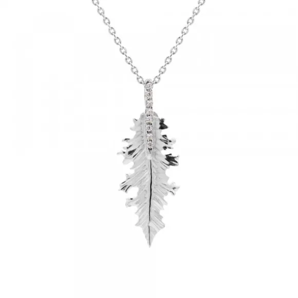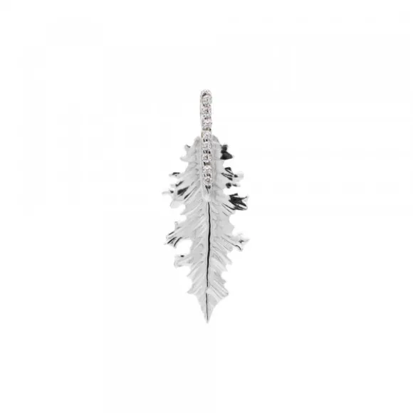 Colgante de Plata de 1ª Ley (925mm) con forma de hoja de la flor Eguzkilore y carril de circonitas blancas en la parte central de la colección Mari. Medidas del colgante: 32mm de alto y 10mm de ancho. Diámetro de la reasa: 3mm. Cadena no incluida.