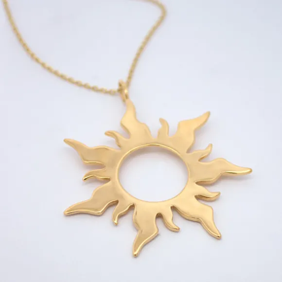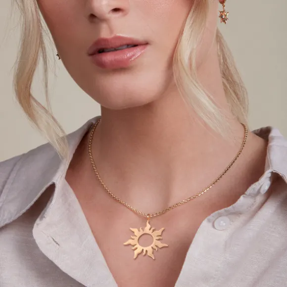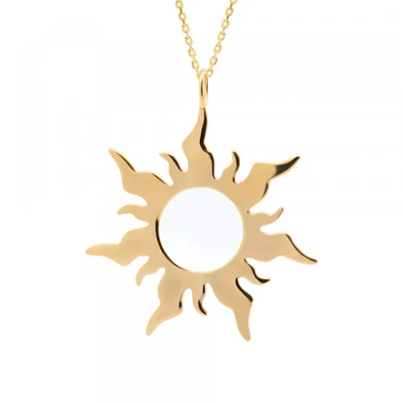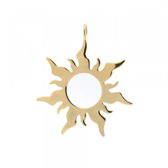 Colgante Mountain de Plata de 1ª Ley (925mm) bañado en oro 18kt. con forma Eguzkilore. Diámetro colgante: 43mm. Diámetro reasa: alto 7mm y ancho 6mm. Cadena no incluida.