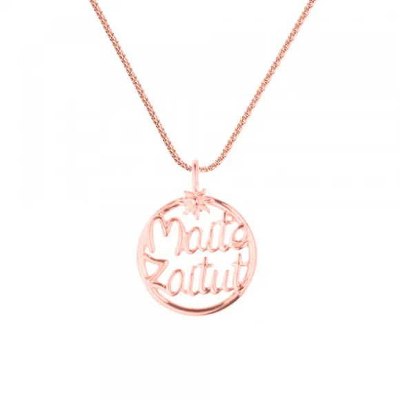 *No se admiten cambios ni devoluciones en artículos de Outlet.Colgante Maite Zaitut de Plata de 1ª Ley (925mm) bañado en Oro Rosa de 18kt. con cerco y un pequeño Eguzkilore, nuestro símbolo de protección. Diámetro del colgante: 21mm. Medidas maite zaitut: Alto 14mm y Ancho 17mm. Medidas de la reasa: Alto 6mm y ancho 1mm. Diámetro del Eguzkilore: 6mm. Grosor del cerco: 1mm. Cadena no incluida.