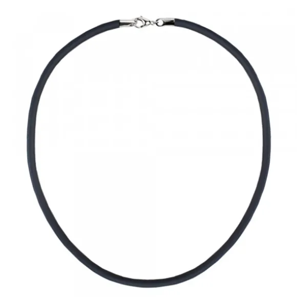 Cordón de caucho negro de 4mm de diámetro grosor con cierre en Plata de 1ª Ley (925mm). Larguras disponibles de 40cm, 45cm y 50cm. Seleccionar la longitud deseada en el desplegable.