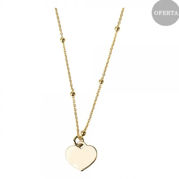 *No se admiten cambios ni devoluciones en artículos de Outlet.Gargantilla de Plata de 1ª Ley (925mm) cubierta por un baño de Oro Amarillo de 18kt. Como motivo contiene una pieza de plata dorada con forma de corazón y en la parte trasera contiene motivo logo Eguzkilore en surco. La cadena es de tipo Forza con 20 piezas con forma de bolas intercaladas a lo largo de la cadena. Posibilidad de grabar en la parte trasera una inicial o Número.