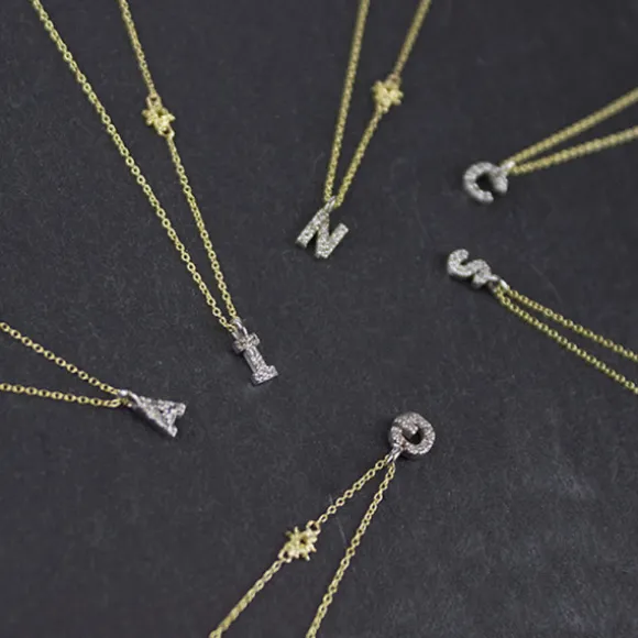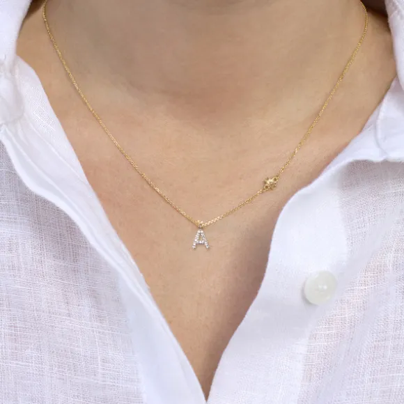 Gargantilla de Oro Amarillo reciclado (750mm – 18kt.) compuesta por cadena de oro amarillo e inicial cubierta por 10 diamantes talla brillante de 0,06kt. La cadena contiene una pequeña pieza en forma de Eguzkilore en el lateral izquierdo. Tamaño de inicial dependiendo de la inicial: 7mm largo y 5mm de ancho. Medida de la cadena: 40cm aproximadamente.En caso de querer otra inicial, se entregará en un plazo de 3-5 semanas.