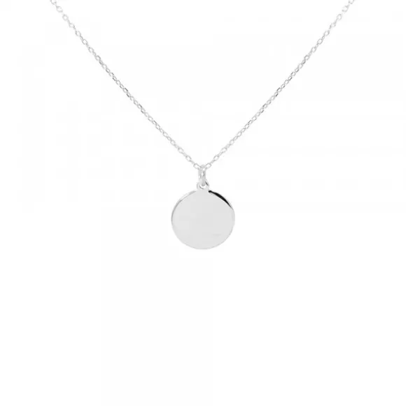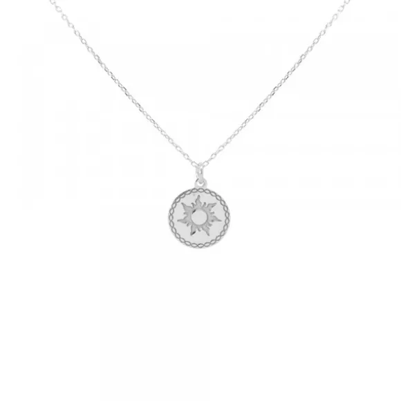 Gargantilla Mountain mini de Plata de 1ª Ley (925mm) con motivo redondo con grafilado en el borde y Eguzkilore grabado en el centro. Cadena tipo rolo. Largura gargantilla: 50cm. Diámetro motivo: 10mm.