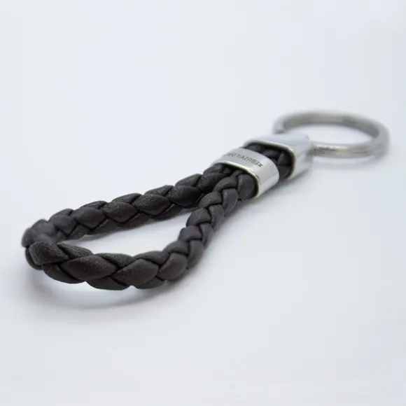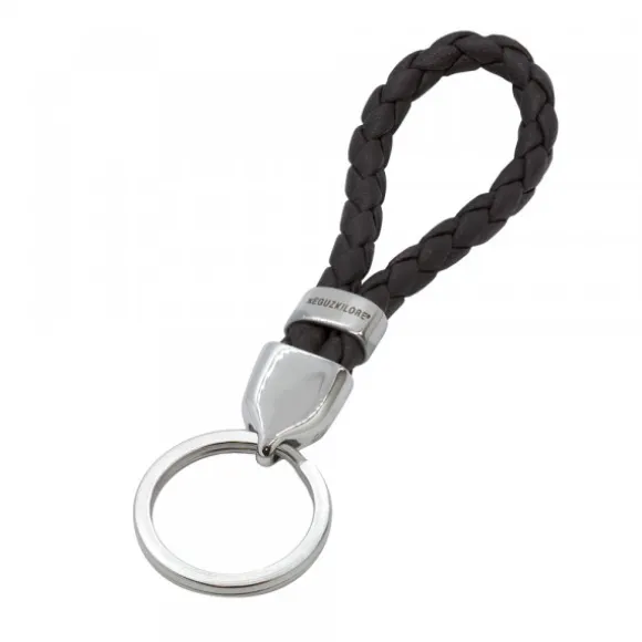 *No se admiten cambios ni devoluciones en artículos de Outlet.Llavero de acero con cuero trenzado en color negro. Medidas del llavero: Largo 10,5cm y ancho 3cm.