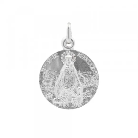 ¡Nueva! Medalla de la Virgen de Aranzazu en Plata de 1ª Ley (925mm) con acabado mate. Posibilidad de grabar un nombre corto o fecha en la parte trasera de la medalla. Diámetro medalla: 20mm. Medidas reasa: alto 6mm y ancho 4mm. Grosor medalla: 1mm. Cadena no incluida.* Una vez realizada la grabación, no se admite devolución.