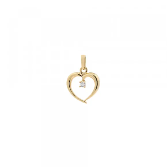 Mini colgante corazón calado de Oro 18kt. reciclado (750mm) con brillante engarzado. Medidas del colgante: 8mm de alto y 9mm de ancho. Tamaño del brillante: 2mm engarzado en cuatro brazos. Reasa de 5mm de alto y 3mm de ancho. Cadena no incluida.