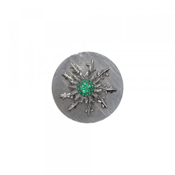 *No se admiten cambios ni devoluciones en artículos de Outlet.Moneda para cerco eguzkilore de Plata de 1ª Ley (925mm) con motivo eguzkilore central con circonitas verdes. Diámetro: 34mm. Talla: M.